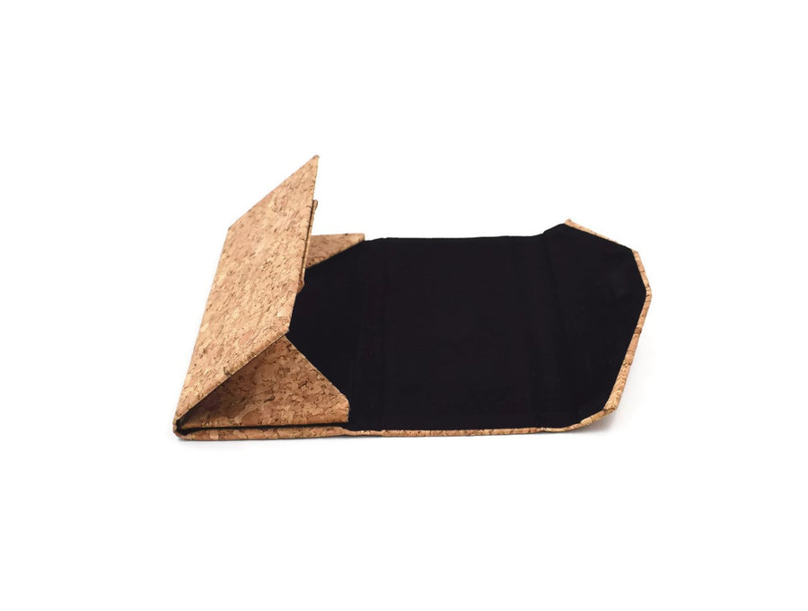 All Duskies purchased online through the Duskies website includes a complimentary foldable cork case, microfibre bag and cleaning cloth. This case folds away compactly in your bag or back pocket when you are wearing your Duskies.
